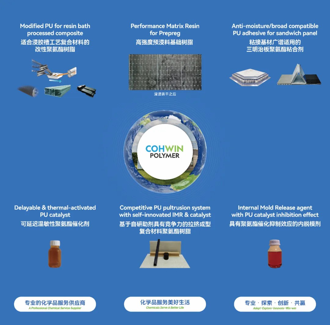 9月2-4日,南京新化原化学集团以“材料技术助力可持续发展”为核心主题,携旗下“COHWIN POLYMER”系列改性聚氨酯新材料创新成果亮相第二十七届中国国际复合材料工业技术展览会(CHINA COMPOSITES EXPO)。