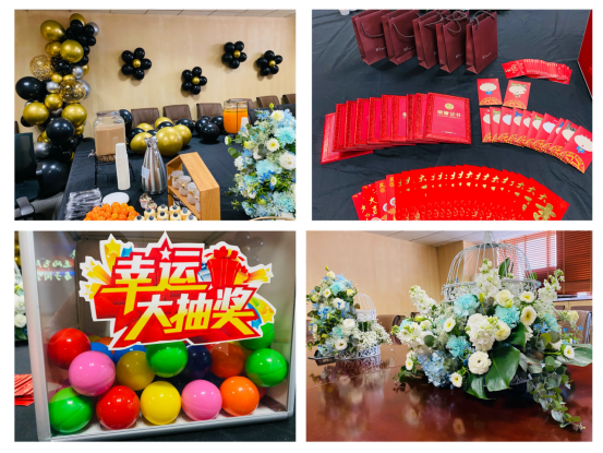 简洁而又不失温馨的布置,给我们的年会增添了几分仪式感,作为一名干饭人,就算今年没有了丰盛的晚宴,但我们准备了茶歇,甜品,奶茶应有尽有,快来一起干饭吧!