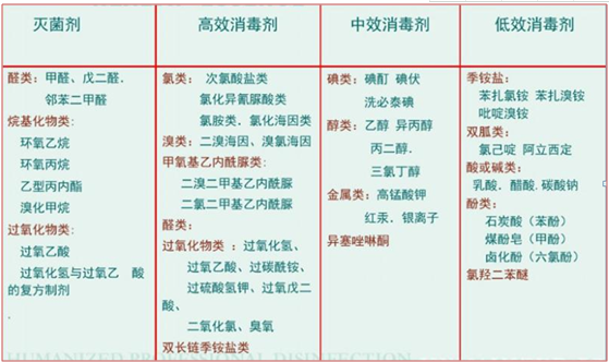 按照消毒功效消毒液又可以分为:高效消毒液、中效消毒液、低效消毒液和灭菌剂。其中高效消毒液是指可杀灭一些细菌繁殖体、病毒、真菌等。中效消毒液是指可杀灭分支杆菌、真菌、病毒以及细胞繁殖体等微生物的消毒液。低效消毒液指可杀灭细菌繁殖体和亲脂病毒的消毒液。其中含氯消毒液、过氧化物消毒液大多属于高效消毒液,乙醇、异丙醇和碘类消毒液属于中效消毒液,季铵盐类消毒液属于低效消毒液。甲醛、烷基化合物和过氧化物属于灭菌剂。
