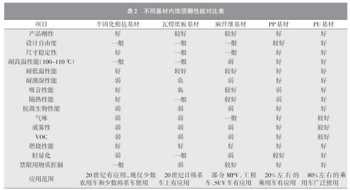 2各种基材在汽车内饰顶棚方面的应用