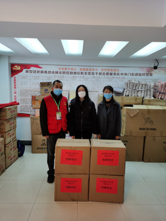 为了能更好地支援疫情防控、积极履行企业的社会责任。在做好企业自身疫情防控的同时,南京新化原化学有限公司孟总作为南京市鼓楼区人大代表,为鼓楼区中央门街道及青石村社区捐赠防护物资。其中捐赠物资给中央门街道口罩8000个,酒精300斤,消毒液700斤;捐赠物资给青石村社区口罩500个,酒精50斤,消毒液50斤。同气连枝,守望相助,是我们新化原义不容辞的责任。