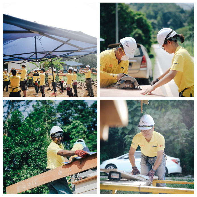 据相关数据统计,目前马来西亚有超过1.2万的原住民家庭仍然居住在破烂不堪的棚户或者临时遮蔽所中,他们的生活条件和居住环境都非常艰辛,而这些家庭,通常都会有三四个小孩,他们的健康成长急需要首先改善目前的居住条件。此次受我们的合作伙伴OLEON的邀请,NCMC三位代表有幸参与到这一次为马来西亚原住民搭建新房屋的公益活动中来,发起此次活动的马来西亚公益组织EPIC协同Oleon员工,以及受邀来自全世界各地的合作伙伴,吉隆坡国际学校的中学生,还有自愿报名的其他社会人士,总计有70余人共同参与到此次活动中。时间为期四天,其中第一天为技术培训课程,后三天为实际搭建,最后成功完成两个房屋的搭建。