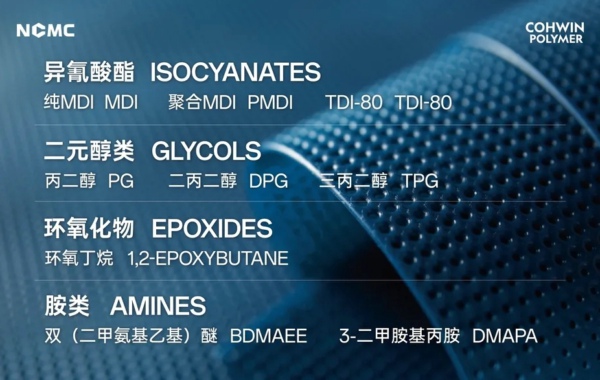 聚力和成COHWIN POLYMER致力于将化学品服务精准融入日常生活的每一个角落,以科技引领、以实际行动践行集团公司“化学品服务美好生活”的企业愿景。通过持续创新,为不同的行业应用场景提供定制化、高性能的产品技术解决方案,与行业客户及合作伙伴携手,共同推动聚氨酯行业的未来发展!