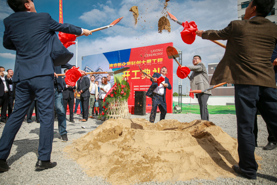 3. 各位领导共同推动铁锹,为项目扬沙奠基