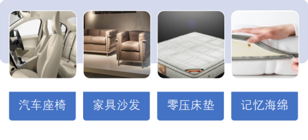垫材,如座椅、沙发、床等家及汽车座椅内饰,聚氨酯是种非常理想的垫材材料,这也是软泡用量最大的应用领域。
