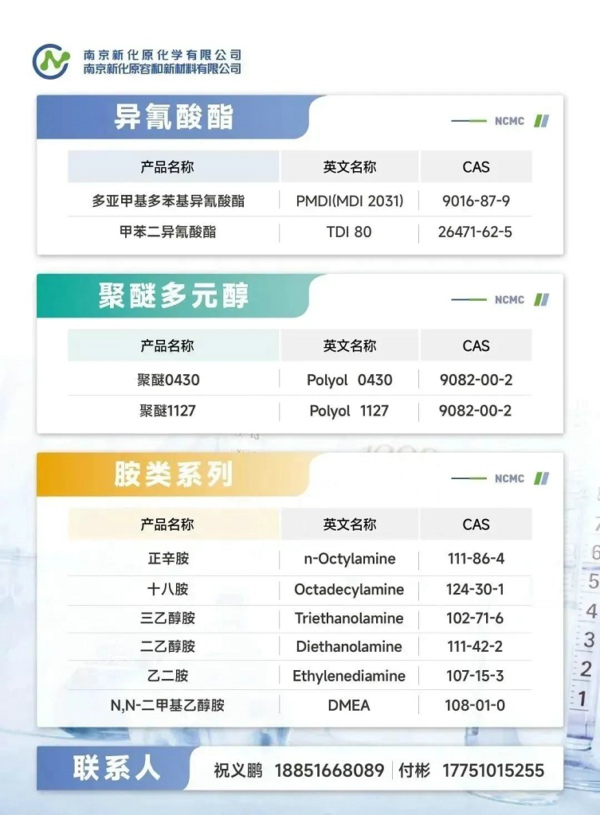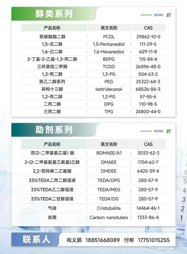 多异氰酸酯(如TDI、MDI、PAPI等):主要原料