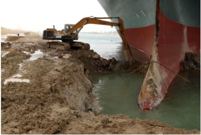 “长赐号”搁浅备受瞩目,小小挖掘机挺身而出