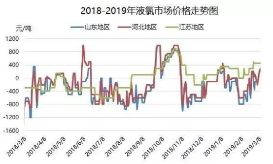 江苏地区:液氯价格稳定。液氯主流价格在1-50元/吨。企业及下游出现减产、停产显现,虽然安全专项检查进行中,但目前供应相对充足,市场暂无利好。