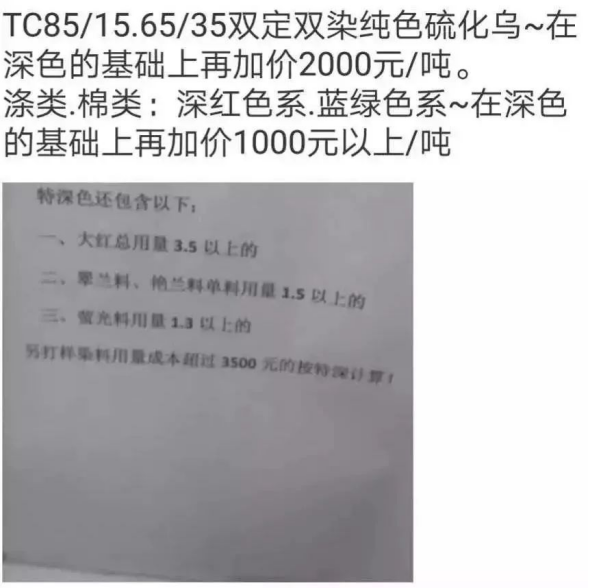 基本确定在深色布类,深色布类由于染料用量比例较大,目前生产成本非常高,染费涨幅在1000-2000元/吨。